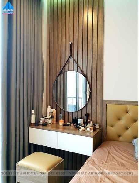 Bàn trang điểm treo tường ABTD03 | ABHOME - một thiết kế tối ưu hóa không gian riêng, mang đến cho quý cô một sự trải nghiệm mới lạ. Sản phẩm gồm 1 bàn trang điểm có 2 hộc tủ gắn vào tường ở độ cao hợp lý, 1 tấm gương treo đầy cá tính và 1 ghế ngồi. Đây là một lựa chọn lý tưởng dành cho không gian phòng ngủ nhỏ.