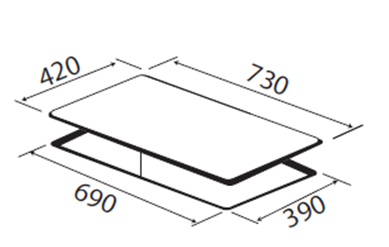 • Kích thước khoét đá: 690x390mm