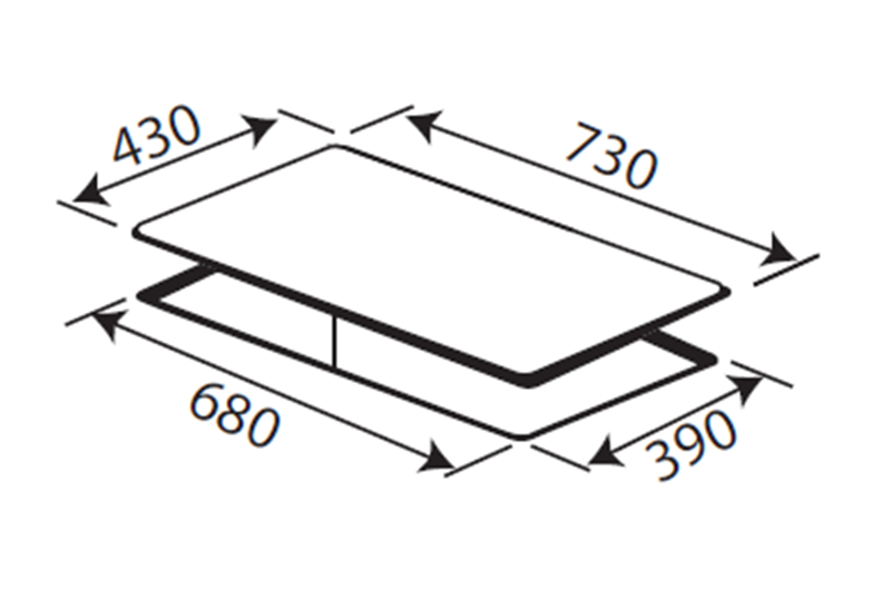 • Kích thước khoét đá: 680 x 390mm