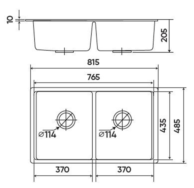 Độ sâu bồn: 205 mm