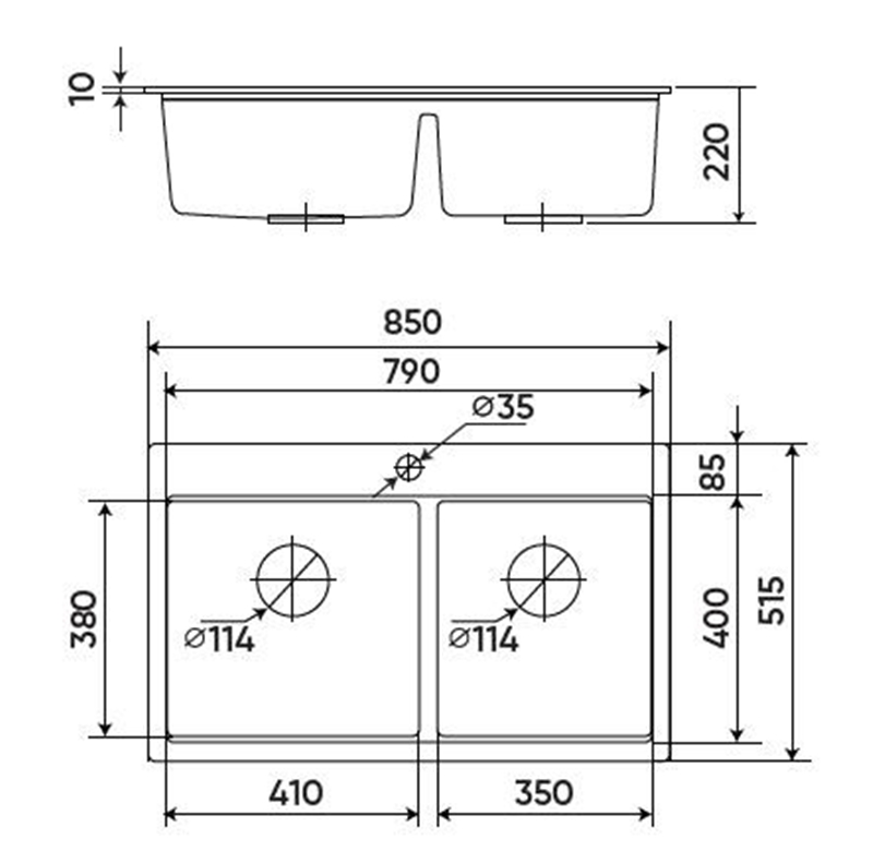 Độ sâu bồn: 220mm