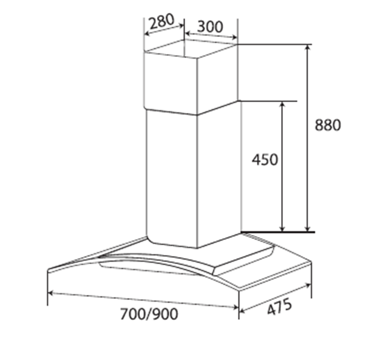 • Máy hút mùi kính cong